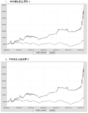 基金管理人:华安基金管理有限公司 基金托管人:中国工商银行股份有限公司 报告送出日期: 二〇一五年一月二十二日 §1 重要提示 基金管理人的董事会及董事保证本报告所载资料不存在虚假记载、误导性陈述或重大遗漏,并对其内容的真实性、准确性和完整性承担个别及连带责任。 基金托管人中国工商银行股份有限公司根据本基金合同规定,于2015年1月19日复核了本报告中的财务指标、净值表现和投资组合报告等内容,保证复核内容不存在虚假记载、误导性陈述或者重大遗漏。 基金管理人承诺以诚实信用、勤勉尽责的原则管理和运用基金资产,但不保证基金一定盈利。 基金的过往业绩并不代表其未来表现。投资有风险,投资者在作出投资决策前应仔细阅读本基金的招募说明书。 本报告中财务资料未经审计。 本报告期自2014年10月1日起至12月31日止。 §2 基金产品概况 ■ §3 主要财务指标和基金净值表现 3.1 主要财务指标 单位:人民币元 ■ 注:1.所述基金业绩指标不包括持有人认购或交易基金的各项费用(例如:封闭式基金交易佣金,开放式基金的申购赎回费、红利再投资费、基金转换费等),计入费用后实际收益水平要低于所列数字。 2.本期已实现收益指基金本期利息收入、投资收益、其他收入(不含公允价值变动收益)扣除相关费用后的余额,本期利润为本期已实现收益加上本期公允价值变动收益。 3.2 基金净值表现 3.2.1 本报告期基金份额净值增长率及其与同期业绩比较基准收益率的比较 1、华安强化收益债券A: ■ 2、华安强化收益债券B: ■ 3.2.2 自基金合同生效以来基金份额累计净值增长率变动及其与同期业绩比较基准收益率变动的比较 华安强化收益债券型证券投资基金 份额累计净值增长率与业绩比较基准收益率的历史走势对比图 (2009年4月13日至2014年12月31日) ■ ■ §4 管理人报告 4.1 基金经理(或基金经理小组)简介 ■ 注:此处的任职日期和离任日期均指公司作出决定之日,即以公告日为准。证券从业的含义遵从行业协会《证券业从业人员资格管理办法》的相关规定。 4.2 管理人对报告期内本基金运作遵规守信情况的说明 本报告期内,本基金管理人严格遵守《证券投资基金法》等有关法律法规及基金合同、招募说明书等有关基金法律文件的规定,本着诚实信用、勤勉尽责的原则管理和运用基金资产,在控制风险的前提下,为基金份额持有人谋求最大利益,不存在违法违规或未履行基金合同承诺的情形。 4.3 公平交易专项说明 4.3.1 公平交易制度的执行情况 根据中国证监会《证券投资基金管理公司公平交易制度指导意见》,公司制定了《华安基金管理有限公司公平交易管理制度》,将封闭式基金、开放式基金、特定客户资产管理组合及其他投资组合资产在研究分析、投资决策、交易执行等方面全部纳入公平交易管理中。控制措施包括:在研究环节,研究员在为公司管理的各类投资组合提供研究信息、投资建议过程中,使用晨会发言、发送邮件、登录在研究报告管理系统中等方式来确保各类投资组合经理可以公平享有信息获取机会。在投资环节,公司各投资组合经理根据投资组合的风格和投资策略,制定并严格执行交易决策规则,以保证各投资组合交易决策的客观性和独立性。同时严格执行投资决策委员会、投资总监、投资组合经理等各投资决策主体授权机制,投资组合经理在授权范围内自主决策,超过投资权限的操作需要经过严格的审批程序。在交易环节,公司实行强制公平交易机制,确保各投资组合享有公平的交易执行机会。(1) 交易所二级市场业务,遵循价格优先、时间优先、比例分配、综合平衡的控制原则,实现同一时间下达指令的投资组合在交易时机上的公平性。(2) 交易所一级市场业务,投资组合经理按意愿独立进行业务申报,集中交易部以投资组合名义对外进行申报。若该业务以公司名义进行申报与中签,则按实际中签情况以价格优先、比例分配原则进行分配。若中签量过小无法合理进行比例分配,且以公司名义获得,则投资部门在合规监察员监督参与下,进行公平协商分配。(3) 银行间市场业务遵循指令时间优先原则,先到先询价的控制原则。通过内部共同的iwind群,发布询价需求和结果,做到信息公开。若是多个投资组合进行一级市场投标,则各投资组合经理须以各投资组合名义向集中交易部下达投资意向,交易员以此进行投标,以确保中签结果与投资组合投标意向一一对应。若中签量过小无法合理进行比例分配,且以公司名义获得,则投资部门在合规监察员监督参与下,进行公平协商分配。交易监控、分析与评估环节,公司合规监察稽核部对公司旗下的各投资组合投资境内证券市场上市交易的投资品种、进行场外的非公开发行股票申购、以公司名义进行的债券一级市场申购、不同投资组合同日和临近交易日的反向交易以及可能导致不公平交易和利益输送的异常交易行为进行监控;风险管理部根据市场公认的第三方信息(如:中债登的债券估值),定期对各投资组合与交易对手之间议价交易的交易价格公允性进行审查,对不同投资组合临近交易日的同向交易的交易时机和交易价差进行分析。 本报告期内,公司公平交易制度总体执行情况良好。 4.3.2 异常交易行为的专项说明 根据中国证监会《证券投资基金管理公司公平交易制度指