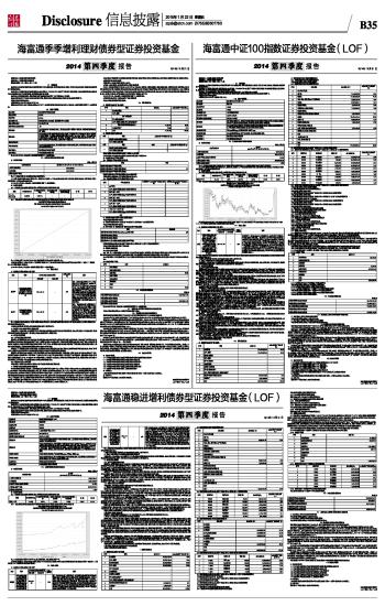 海富通稳进增利债券型证券投资基金(LOF)2014第四季度报告2014年12月31日 2015-01-22 来源:证券时报网 作者: