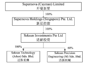 注:行业上市公司市盈率=2014年6月30日公司A股股票收盘价×总股本/2013年度归属于母公司股东的净利润;行业上市公司市净率=2014年6月30日公司A股股票收盘价×总股本/2014年6月30日净资产。 综上所述,本次交易购买资产定价合理、公允,充分保证了公司及全体股东的利益,尤其是中小股东的利益。 4、过渡期内损益归卖方所有的原因及合理性 过渡期(即《股份购买协议》签订日至交割日期间)损益归卖方所有主要考虑如下因素: (1)本次交易价格为交易双方综合考虑目标集团的盈利能力、未来发展前景、技术与品牌、市场与客户等多种因素,并参考审计、评估报告的结果,由交易双方友好协商确定的,并非采用收益法评估结果进行定价。 (2)由于过渡期间安洁科技未向卖方支付任何对价,且目标集团所有权属于卖方,同时目标集团仍由卖方负责运营,故过渡期损益归卖方是符合产权享有收益的商业原则,是股东基本权利的体现。 (3)交易双方协商确定的交易对价是基于预期的交割日目标集团的企业价值,并通过现金、负债、营运资本、资本支出等项目调整确定,而不是基于收购协议签订日,故过渡期目标集团的损益情况已经体现在了交割日的损益中。在确定目标集团企业价值时,双方已经考虑了过渡期的损益情况,因此,损益归卖方是合理的,且也符合国际交易的惯例。 综上所述,过渡期损益归卖方所有,是基于本次交易对价是交易双方平等协商的结果,符合本次交易定价的原则和产权享有收益的商业原则,具备公平性和合理性。 三、按商定价值扣减已转让两家子公司的转让价作为最终收购价的公允合理性 Supernova Holdings (Singapore) Pte. Ltd.原下属的子公司适新科技(柔佛)私营有限公司和适新精密五金(马)私营有限公司(以下简称“两家马来西亚公司”)在股权转让前,Supernova Holdings (Singapore) Pte. Ltd.通过适新投资间接控制其股权,控制关系如下图所示: ■ 2012年-2014年上半年,两家马来西亚公司的资产、负债、营业收入和净利润占目标公司相应合并数据的比例很小,且两家马来西亚公司盈利能力较弱,主营业务与安洁科技不一致,也不符合安洁科技未来发展战略,因此安洁科技与交易对方经协商确定,本次收购不包括两家马来西亚公司,交易对方需要在实际交割前将两家马来西亚公司从目标公司体系中予以剥离。 2014年10月24日,按照Supernova Holdings (Singapore) Pte. Ltd.与Supernova (Cayman) Limited签订的股权转让协议,Supernova Holdings (Singapore) Pte. Ltd.已按照840万美元的价格将两家马来西亚公司的股权转让给Supernova (Cayman) Limited于目标集团外设立的另一家全资子公司。 因此两家马来西亚公司并不在本次交易的收购范围内,交易对价也并未包括两家马来西亚公司的价值。按照交易双方签订的《股份购买协议》,收购Supernova Holdings (Singapore) Pte. Ltd.100%股权支付的交易对价=14,500万美元 + 交割日目标集团现金 - 交割日目标集团负债 +/- 营运资本调整金额 +/- 资本支出调整金额 - 保险费用 + 买方应承担的DBS展期费用。以上交易对价的计算也未包括两家马来西亚公司的价值。 而本次评估基准日为2014年6月30日,评估对象为Supernova Holdings (Singapore) Pte. Ltd.100%股权价值,在评估基准日,两家马来西亚公司仍然属于Supernova Holdings (Singapore) Pte. Ltd.间接控制的公司。根据相关评估准则,对评估基准日Supernova Holdings (Singapore) Pte. Ltd.的100%股权进行评估时,需要包括对两家马来西亚公司的长期股权投资价值。因此,为了评估结果(评估基准日2014年6月30日,此时包含两家马来西亚公司)与交易对价的可比性,评估报告披露了不包括两家马来西亚公司的Supernova Holdings (Singapore) Pte. Ltd.的100%股权价值。 本次交易定价是交易双方根据多方因素协商确定,而不是由评估结果确定。根据交割日目标集团的现金、负债等调整事项调整后,本次安洁科技收购目标公司100%股权最终交易对价为人民币83,016.95万元。而根据中企华出具的评估报告,扣除两家马来西亚公司的股权价值后,目标公司的股东全部权益价值为88,913.92万元人民币,评估值较收购价格83,016.95万元高出7.10%;同时本次收购动态市盈率为8.74倍、静态市盈率为7.71倍、市净率为1.00倍,均低于目标公司A股同行业可比上市公司市盈率,交易定价公允合理。 特此公告。 苏州安洁科技股份有限公司董事会 二〇一五年一月二十六日 本版导读: