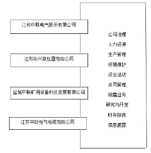 上述纳入评价范围的单位、业务和事项以及高风险领域涵盖了公司经营管理的主要方面,不存在重大遗漏。 (二)内部控制评价工作依据及内部控制缺陷认定标准 公司根据《企业内部控制基本规范》及其配套指引对重大缺陷、重要缺陷和一般缺陷的认定要求,结合公司规模、行业特点、风险特征等因素,确定了适用本公司的内部控制缺陷具体认定标准,具体如下: 重大缺陷是指一个或多个控制缺陷的组合,可能导致公司严重偏离控制目标; 重要缺陷是指一个或多个控制缺陷的组合,其严重程度和经济后果低于重大缺陷,但仍有可能导致公司偏离控制目标; 一般缺陷是指除重大缺陷和重要缺陷以外的控制缺陷。 1、财务报告内部控制缺陷认定标准 公司确定的财务报告内部控制缺陷评价的定量标准如下: ■ 公司确定的财务报告内部控制缺陷评价的定性标准如下: ■ 2、非财务报告内部控制缺陷认定标准 公司确定的非财务报告内部控制缺陷评价的定量标准如下: ■ 公司确定的非财务报告内部控制缺陷评价的定性标准如下: ■ 3、公司整体内部控制有效性认定标准 综合考量评价发现的财务报告、非财务报告内部控制缺陷,如果不存在重大缺陷且存在的重要缺陷小于或等于 3个,则整体内控有效;如果存在重大缺陷或存在的重要缺陷大于 3个,则整体内控无效。 (三)内部控制缺陷认定及整改情况 1、财务报告内部控制缺陷认定及整改情况 根据上述财务报告内部控制缺陷的认定标准,报告期内公司不存在财务报告内部控制重大缺陷、重要缺陷。 2、非财务报告内部控制缺陷认定及整改情况 根据上述非财务报告内部控制缺陷的认定标准,报告期内未发现公司非财务报告内部控制重大缺陷、重要缺陷。 3、内部控制持续完善措施 进一步完善公司内部控制结构,梳理和完善公司各项内控流程,改进不增值的内部控制活动,对公司内部控制程序进行治理和补充,进一步完善公司管理制度、部门工作职责及岗位责任制,使相关内部控制程序系统化。 特此公告 江苏中联电气股份有限公司董事会 2015年1月29日
