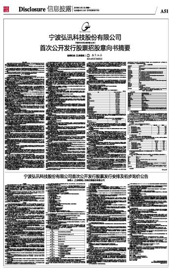 宁波弘讯科技股份有限公司首次公开发行股票发行安排及初步询价公告 2015-02-02 来源:证券时报网 作者:
