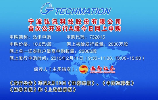 [报眼]弘讯申购(732015)