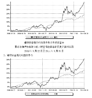 (二)自基金合同生效以来基金累计份额净值增长率变动及其与同期业绩比较基准收益率变动的比较 浦银安盛优化收益债券型证券投资基金 累计净值增长率与业绩比较基准收益率的历史走势对比图 2008年12月30日至2014年9月30日 1、浦银安盛优化收益债券A: ■ 十四、基金费用概览 (一)与基金运作有关的费用 1、基金费用的种类 (1)基金管理人的管理费; (2)基金托管人的托管费; (3)销售服务费; (4)《基金合同》生效后与基金相关的信息披露费用; (5)《基金合同》生效后与基金相关的会计师费和律师费; (6)基金份额持有人大会费用; (7)基金的证券交易费用; (8)基金的银行汇划费用; (9)按照国家有关规定和《基金合同》约定,可以在基金财产中列支的其他费用。 本基金终止清算时所发生费用,按实际支出额从基金财产总值中扣除。 2、基金费用计提方法、计提标准和支付方式 (1)基金管理人的管理费 本基金的管理费按前一日基金资产净值的0.65%年费率计提。管理费的计算方法如下: H=E×0.65%÷当年天数 H为每日应计提的基金管理费 E为前一日的基金资产净值 基金管理费每日计算,逐日累计至每月月末,按月支付,由基金管理人向基金托管人发送基金管理费划款指令,基金托管人复核后于次月前2个工作日内从基金财产中一次性支付给基金管理人。若遇法定节假日、公休假等,支付日期顺延。 (2)基金托管人的托管费 本基金的托管费按前一日基金资产净值的0.2%的年费率计提。托管费的计算方法如下: H=E×0.2%÷当年天数 H为每日应计提的基金托管费 E为前一日的基金资产净值 基金托管费每日计算,逐日累计至每月月末,按月支付,由基金管理人向基金托管人发送基金托管费划款指令,基金托管人复核后于次月前2个工作日内从基金财产中一次性支取。若遇法定节假日、公休日等,支付日期顺延。 上述“1、基金费用的种类”中第(4)-(8)项费用,根据有关法规及相应协议规定,按费用实际支出金额列入当期费用,由基金托管人从基金财产中支付。 (3)基金销售服务费 本基金A 类基金份额不收取销售服务费,C 类基金份额的销售服务费按前一日C 类基金资产净值的0.4%年费率计提。计算方法如下: H=E×0.4%÷当年天数 H 为C 类基金份额每日应计提的销售服务费 E 为C 类基金份额前一日基金资产净值 基金销售服务费每日计提,按月支付。由基金管理人向基金托管人发送基金销售服务费划付指令,经基金托管人复核后于次月首日起3个工作日内从基金财产中一次性支付给基金管理人,由基金管理人分别支付给各基金销售机构。若遇法定节假日、休息日,支付日期顺延。 本基金销售服务费将专门用于本基金的销售与基金份额持有人服务,基金管理人将在基金年度报告中对该项费用的列支情况作专项说明。 3、本基金不列入基金费用的项目 下列费用不列入基金费用: (1)基金管理人和基金托管人因未履行或未完全履行义务导致的费用支出或基金财产的损失; (2)基金管理人和基金托管人处理与基金运作无关的事项发生的费用; (3)《基金合同》生效前的相关费用,包括但不限于验资费、会计师和律师费、信息披露费用等费用; (4)其他根据相关法律法规及中国证监会的有关规定不得列入基金费用的项目。 4、费用调整 基金管理人和基金托管人协商一致后,可根据基金发展情况调整基金管理费率、基金托管费率、基金销售费率等相关费率。 调高基金管理费率、基金托管费率或基金销售费率等费率,须召开基金份额持有人大会审议;调低基金管理费率、基金托管费率或基金销售费率等费率,无须召开基金份额持有人大会。 基金管理人必须最迟于新的费率实施日前2日在至少一种指定媒体和基金管理人网站上公告。 (二)与基金销售有关的费用 1、申购费 本基金的申购费用由基金申购人承担,不列入基金财产,主要用于本基金的市场推广、销售、注册登记等各项费用。 本基金的申购费率随申购金额的增加而递减。 (1)非电子直销渠道,适用以下前端收费费率标准: