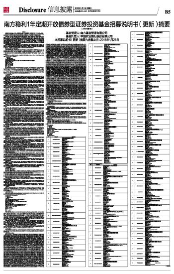 南方稳利1年定期开放债券型证券投资基金招募说明书(更新)摘要(2015年第1号) 2015-03-03 来源:证券时报网 作者: