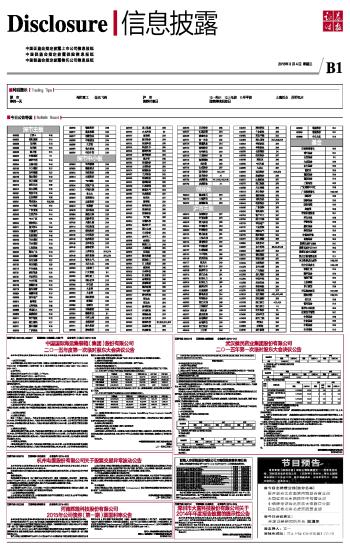 今日公告导读 Bulletin Board 深市主板 000002 万科A B40 000005 世纪星源 B16 000008 宝利来 B72 000008 宝利来 B66 000038 深大通 B31 000039 中集集团 B1 000062 深圳华强 B44 000066 长城电脑 B44 000100 TCL集团 B37 000150 宜华健康 B27 000158 常山股份 B46 000166 申万宏源 B27 000410 沈阳机床 B29 000416 民生控股 B49 000421 南京中北 B36 000498 山东路桥 B28 000501 鄂武商A B22,B23 000504 *ST传媒 B56 000537 广宇发展 B15 000550 江铃汽车 B16 000557 *ST广夏 B65 000564 西安民生 B4 000571 新大洲A B46 000593 大通燃气 B50 000626 如意集团 B40 000632 三木集团 B44 000632 三木集团 B32 000650 仁和药业 B24 000665 湖北广电 B44 000683 远兴能源 B15 000686 东北证券 B27 000709 河北钢铁 B29 000715 中兴商业 B44 000721 西安饮食 B35 000727 华东科技 B24 000755 *ST三维 B33 000762 西藏矿业 B43 000778 新兴铸管 B53 000826 桑德环境 B19 000838 国兴地产 B55 000876 新希望 B65 000878 云南铜业 B28 000888 峨眉山A B55 000892 星美联合 B46 000911 南宁糖业 B72 000913 钱江摩托 B37 000937 冀中能源 B35 000952 广济药业 B72 000960 锡业股份 B68 000971 蓝鼎控股 B60 000977 浪潮信息 B25 000982 中银绒业 B24 000989 九芝堂 B43 000995 皇台酒业 B24 000996 中国中期 B39 深市中小板 002004 华邦颖泰 B54 002005 德豪润达 B55 002010 传化股份 B28 002014 永新股份 B33 002015 *ST霞客 B66 002036 汉麻产业 B36 002057 中钢天源 B29 002060 粤水电 B64 002062 宏润建设 B49 002070 众和股份 B44 002076 雪莱特 B46 002078 太阳纸业 B35 002084 海鸥卫浴 B39 002093 国脉科技 B26 002100 天康生物 B64 002116 中国海诚 B37 002123 荣信股份 B32 002129 中环股份 B26 002139 拓邦股份 B33 002140 东华科技 B32 002149 西部材料 B14 002157 正邦科技 B13,B14 002168 深圳惠程 B21,B23 002169 智光电气 B34 002249 大洋电机 B26 002252 上海莱士 B29 002253 川大智胜 B4 002255 海陆重工 B24 002258 利尔化学 B19 002260 伊立浦 B24 002263 大东南 B36 002263 大东南 B44 002270 法因数控 B46 002280 新世纪 B45 002286 保龄宝 B27 002290 禾盛新材 B44 002296 辉煌科技 B1 002306 中科云网 B53 002307 北新路桥 B54 002311 海大集团 B27 002320 海峡股份 B34 002322 理工监测 B28 002326 永太科技 B4 002327 富安娜 B32 002328 新朋股份 B24 002331 皖通科技 B25 002339 积成电子 B26 002341 新纶科技 B33 002349 精华制药 B24 002351 漫步者 B40 002353 杰瑞股份 B72 002368 太极股份 B56 002374 丽鹏股份 B14 002427 尤夫股份 B41 002429 兆驰股份 B54 002431 棕榈园林 B29 002438 江苏神通 B24 002451 摩恩电气 B34 002452 长高集团 B27 002456 欧菲光 B37 002462 嘉事堂 B39 002465 海格通信 B53 002477 雏鹰农牧 B50 002495 佳隆股份 B28 002510 天汽模 B55 002514 宝馨科技 B29 002519 银河电子 B16 002522 浙江众成 B36 002530 丰东股份 B36 002533 金杯电工 B53 002548 金新农 B16 002555 顺荣三七 B44 002565 上海绿新 B53 002570 贝因美 B49 002573 国电清新 B19 002584 西陇化工 B26 002593 日上集团 B29 002614 蒙发利 B40 002618 丹邦科技 B40 002619 巨龙管业 B37 002624 金磊股份 B40 002628 成都路桥 B65 002631 德尔家居 B25 002633 *ST申科 B33 002637 赞宇科技 B36 002658 雪迪龙 B35 002658 雪迪龙 B54 002663 普邦园林 B20 002675 东诚药业 B56 002679 福建金森 B32 002681 奋达科技 B32 002684 猛狮科技 B9,B10,B11,B12 002692 远程电缆 B28 002693 双成药业 B54 002696 百洋股份 B20 002697 红旗连锁 B64 002699 美盛文化 B37 002721 金一文化 B46 002732 燕塘乳业 B14 002733 雄韬股份 B44 002741 光华科技 B15 002742 三圣特材 B4 002743 富煌钢构 B20 002745 木林森 B68 002746 仙坛股份 B27 002749 国光股份 A16,A15 002749 国光股份 A1 002750 龙津药业 A17,A18,A19,A20 002750 龙津药业 A1 创业板 300064 豫金刚石 B15 300134 大富科技 B1 300426 唐德影视 B24 沪市主板 600010 包钢股份 B37 600030 中信证券 B72 600035 楚天高速 B25 600066 宇通客车 B24 600084 中葡股份 B26 600103 青山纸业 B51 600116 三峡水利 B72 600136 道博股份 B19 600150 中国船舶 B60 600157 永泰能源 B31 600163 *ST南纸 B60 600168 武汉控股 B28 600177 雅戈尔 B43 600203 福日电子 B33 600208 新湖中宝 B4 600210 紫江企业 B51 600236 桂冠电力 B4 600236 桂冠电力 B52 600255 鑫科材料 B4 600266 北京城建 B47 600269 赣粤高速 B16 600282 南钢股份 B33 600283 钱江水利 B48 600293 三峡新材 B36 600306 商业城 B28 600337 美克家居 B33 600383 金地集团 B16 600390 金瑞科技 B35 600395 盘江股份 B64 600460 士兰微 B44 600476 湘邮科技 B53 600479 千金药业 B35 600481 双良节能 B16 600498 烽火通信 B17,B18,B19 600503 华丽家族 B34 600521 华海药业 B44 600525 长园集团 B4 600538 国发股份 B37 600548 深高速 B40 600550 *ST天威 B15 600555 九龙山 B27 600565 迪马股份 B69,B70 600566 洪城股份 B49 600567 山鹰纸业 B27 600575 皖江物流 B25 600588 用友网络 B35 600614 鼎立股份 B48 600655 豫园商城 B20 600656 博元投资 B16 600664 哈药股份 B72 600685 广船国际 B55 600690 青岛海尔 B51 600704 物产中大 B47 600706 曲江文旅 B43 600743 华远地产 B39 600747 大连控股 B36 600759 洲际油气 B15 600770 综艺股份 B16 600797 浙大网新 B29 600806 昆明机床 B27 600832 东方明珠 B5,B6,B7,B8 600868 梅雁吉祥 B64 600976 健民集团 B1 600999 招商证券 B27 601010 文峰股份 B59 601198 东兴证券 B59 601238 广汽集团 B64 601258 庞大集团 B48 601390 中国中铁 B16 601588 北辰实业 B40 601872 招商轮船 B56 601929 吉视传媒 B72 603012 创力集团 A21,A22,A23 603222 济民制药 B50 603338 浙江鼎力 A13,A14 603338 浙江鼎力 A1 603618 杭电股份 B1 603686 龙马环卫 B60 603698 航天工程 B35 603828 柯利达 B60 603898 好莱客 B47 603939 益丰药房 B32 603969 