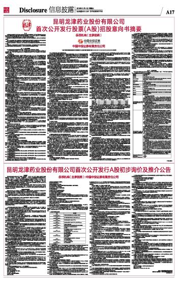 昆明龙津药业股份有限公司首次公开发行股票(A股)招股意向书摘要
