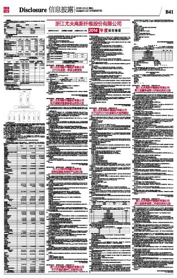 浙江尤夫高新纤维股份有限公司2014年度报告摘要
