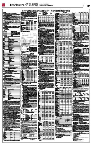 (上接B5版) 12、发行费用概算:本期债券发行总计费用(包括承销和保荐费用、委托管理费用、律师费、资信评级费用、发行手续费等)预计不超过募集资金总额的1.1%。 13、承销方式:本期债券由联合主承销商组织承销团,采取余额包销的方式承销。 14、债券形式:本次债券为实名制记账式公司债券。投资者认购的本期债券在证券登记机构开立的托管账户托管记载。本期债券发行结束后,债券持有人可按照有关主管机构的规定进行债券的转让、质押等操作。 15、还本付息方式:本期债券采用单利按年计息,不计复利,每年付息一次,到期一次还本,最后一期利息随本金的兑付一起支付。每期付息款项自付息日起不另计利息,本金自兑付日起不另计利息。具体本息兑付工作按照主管部门的相关规定办理。 16、支付金额:本期债券于每个付息日向投资者支付的利息金额为投资者截至利息登记日收市时所持有的本期债券票面总额与对应的票面利率的乘积;于兑付日向投资者支付的本息金额为投资者截至兑付登记日收市时所持有的本期债券最后一期利息及所持有的债券票面总额的本金。 17、发行首日及起息日:本期债券发行首日及起息日为2015年3月9日。 18、利息登记日:本期债券的利息登记日将按照上市地和债券登记机构的相关规定执行。 在利息登记日当日收市后登记在册的本期债券持有人,均有权就所持本期债券获得该利息登记日所在计息年度的利息。 19、付息日:2016年至2018年间每年的3月9日为上一计息年度的付息日(如遇法定节假日或休息日,则顺延至其后的第1个工作日)。 20、兑付登记日:本次债券的兑付登记日将按照上市地和债券登记机构的相关规定执行。在兑付登记日当日收市后登记在册的本次债券持有人,均有权获得所持本次债券的本金及最后一期利息。 21、兑付日:本次债券的兑付日为2018年3月9日(如遇法定节假日或休息日,则顺延至其后的第1个工作日)。 22、募集资金用途:本次发行债券的募集资金将全部用于补充公司营运资金,优化公司资产负债结构。 23、拟上市地:上交所。 24、质押式回购:公司主体信用等级为AA,本次债券信用等级为AA,本次债券符合进行质押式回购交易的基本条件。发行人拟向上交所及债券登记机构申请质押式回购安排。如获批准,具体折算率等事宜将按上交所及债券登记机构的相关规定执行。 25、税务提示:根据国家有关税收法律、法规的规定,投资者投资本次债券所应缴纳的税款由投资者承担。 (二)本次债券的发行及上市安排 1、本次债券发行时间安排 本次债券在上交所上市前的重要日期安排如下: 表1.1 ■ 2、本次债券上市安排 本次发行结束后,发行人将尽快向上交所提出关于本次债券上市交易的申请。具体上市时间将另行公告。 四、本次发行的有关机构 (一)发行人:太平洋证券股份有限公司 ■ (二)保荐人(联合主承销商、债券受托管理人):信达证券股份有限公司 ■ (三)联合主承销商:中银国际证券有限责任公司 ■ (四)分销商:中信建投证券股份有限公司 ■ (五)律师事务所:北京德恒律师事务所 ■ (六)会计师事务所:立信会计师事务所(特殊普通合伙) ■ (七)资信评级机构:联合信用评级有限公司 ■ (八)申请上市的证券交易所:上海证券交易所 ■ (九)本次债券登记机构:中国证券登记结算有限责任公司上海分公司 ■ 五、发行人与本次发行的有关机构、人员的利害关系 截至本募集说明书签署日,发行人与本次发行有关的中介机构及其负责人、高级管理人员及经办人员之间不存在直接或间接的股权关系或其他利害关系。 第二节 发行人资信状况 一、公司债券信用评级情况及资信评估机构 经联合评级综合评定,本公司主体信用等级为AA级,本次债券的信用级别为AA级。联合评级出具了《太平洋证券股份有限公司2014年公司债券信用评级分析报告》(联合评字[2014]275号),该评级报告在联合评级网站(www.unitedratings.com.cn)予以公布。 二、公司债券信用评级报告主要事项 (一)信用评级结论及标识所代表的的涵义 联合评级评定太平洋证券主体信用等级为AA级,该级别反映了受评主体偿还债务的能力很强,受不利经济环境的影响不大,违约风险很低。 (二)评级报告的内容摘要 1、基本观点 联合评级评定“太平洋证券股份有限公司2014年公司债券”信用级别为AA,评级机构认为本期公司债券到期不能偿还的风险很低。 联合评级对发行人的评级反映了其作为一家综合类证券公司,经营合规、财务稳健;公司在云南省内区域竞争优势明显,2014年上半年增发后,公司资本充足,债务杠杆水平较低;未来随着公司战略的推进,公司业务结构将趋向多元化,盈利能力有望进一步增强。联合评级同时也关注到经济周期波动、国内证券市场波动以及相关监管政策变化等因素可能对公司经营带来的不利影响。 2、优势 (1)公司多年来以云南省为区域重点,经纪业务在云南市场占有率排名第一,形成了较强的区域竞争优势,并逐步形成立足云南、辐射周边的态势。 (2)公司经纪业务盈利能力较强;投资银行业务具备一定竞争力;自营业务坚持稳健投资的理念,获得较好投资收益;资产管理业务和控股子公司相关业务发展较快。 (3)2014年上半年增发后,公司资本充足,债务杠杆水平较低,未来随着公司战略的推进,公司业务结构将趋向多元化,盈利能力有望进一步增强