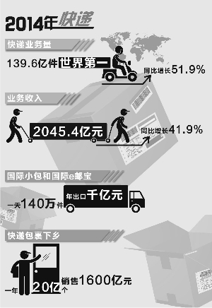 证券时报两会报道组 全国政协委员、国家邮政局局长马军胜接受采访时表示,快递服务、安全和企业经营等方面,还有许多问题要解决。下一步,国家邮政局要着手推动“五个邮政”建设,促进我国由快递大国向快递强国发展。 国家邮政局公布的数据显示,2014年,快递业务量累计完成139.6亿件,同比增长51.9%;业务收入累计完成2045.4亿元,同比增长41.9%。2014年,我国的快递业务量超过美国,成为世界第一。 对于1年接近140亿件的快递规模,马军胜表示,这相当于每天大约有4000万件快递在寄递途中,每秒钟就有约440件。在“双11”期间,一秒钟就发出了超过1000件快递,这在世界各国都是绝无仅有的。这意味着我国快递业已进入快速发展阶段,快递已进入千家万户和亿万商家,成为一项不可或缺的服务。 马军胜认为,这个成绩的确鼓舞人心,但也要清醒认识到,中国是快递大国,但还不是强国。下一步,国家邮政局要着手推动“五个邮政”建设,促进我国由快递大国向快递强国发展。 北京邮电大学邮政发展研究中心主任赵国君认为,邮政快递业务的做强做大,将有助于促进我国的商品流通和消费升级。现在的快递业务有三个新的定位,即成为服务业的关键产业、替代传统流通方式和刺激消费升级的现代产业、物流领域的先导性产业。赵国君认为,网购就是最好的例子,这一发展,需要信息、支付和物流的“三流”结合。 数据显示,2014年的全国快递业务中,同城业务收入累计完成265.9亿元,同比增长59.8%;异地快递业务收入累计完成1130.6亿元,同比增长36.4%;国际及港澳台快递业务收入累计完成315.9亿元,同比增长16.7%。 马军胜表示,目前我国邮政行业有快递服务、邮政服务两大领域。邮政服务是我们国家公共服务的组成部分,之前没有通邮的8440个乡镇,已有93%补建了邮政局所,到2015年底也将全部通邮。这样,没有快递的地方可以通过邮政网络,保证网购物品送到人们手中。 “快递下乡”服务也促进了农产品销售,带动了农民增收。马军胜表示,通过这个平台,很多农村的特色农副产品可以直接进城了,比如湖北的莲藕、陕西的苹果、广西百色的香芒、山东的樱桃、广东的荔枝等。这对促进消费和带动农民致富意义重大。马军胜认为,这块市场才刚刚起步,未来的发展大有潜力。 本版导读: