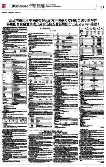 深圳市奋达科技股份有限公司发行股份及支付现金购买资产并募集配套资金暨关联交易实施情况暨新增股份上市公告书(摘要)