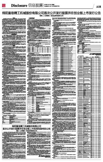 绵阳富临精工机械股份有限公司首次公开发行股票并在创业板上市发行公告保荐人(主承销商):首创证券有限责任公司 2015-03-10 来源:证券时报网 作者: