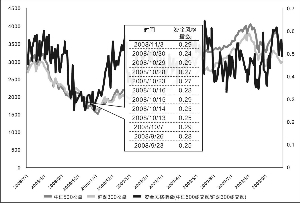回顾2006~2007年大牛市,以“5·30”行情为标志的市场风格转换依然让人记忆犹新。这一变化也从资金风格指数的走势上得到较好体现:2007年5月23日,资金风格指数创出0.67的阶段性高点,此后便一路震荡走低。2007年10月,各大型指数见顶回落之后,资金风格指数仍进一步走低,但此后一个半月资金对大盘蓝筹股追捧的惯性已无力推动股指的重新上行。于是,资金重新回归小盘股,推动中证500指数在2008年1月中旬创出本轮牛市的历史新高。随后,A股市场大小盘个股才同步进入大熊市的节奏之中。 回顾2006年至2007年的大牛市,这是A股市场最大的一次具有宏观基本面支撑的牛市。中国经济持续高增长,中国制造全面崛起,上市公司特别是周期性行业公司的业绩大幅提升,为大盘蓝筹股的上涨提供了充足的基本面动力。而资金面的动力同样强劲,改革开放后老百姓越来越富裕,但投资渠道十分短缺,股票市场赚钱效应吸引了大量的资金通过申购开放式基金进入股市,形成了我国资本市场上第一次存款大搬家。公募基金持续获得巨额申购后不断被动加仓,在大盘蓝筹股上的话语权持续增大,进一步推动蓝筹股和股指的上涨。这也是此轮大牛市以蓝筹股为核心的逻辑基础。因此,这一阶段资金风格指数绝大多数时候都在0.6之下运行,反映出资金以大盘蓝筹股为交易对象的风格特征。 第二阶段(图3)发生在上述大熊市的末期。2008年9月中旬开始,各种救市政策密集出台。2008年9月中旬至年底,央行4次下调金融机构存款准备金率,大型金融机构存准率累计下调3%,中小金融机构存准率更是下调了4个百分点;贷款利率则连续5次下调,由此前的7.47%调整至5.31%,累计下降2.16%;2008年9月开始,汇金公司出手增持旗下四大国有银行股票,并引发一轮国企控股股东的增持潮;2008年11月,规模高达4万亿的经济刺激政策重磅出台。