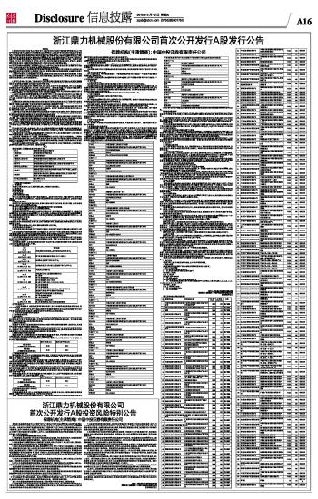 浙江鼎力机械股份有限公司首次公开发行A股投资风险特别公告