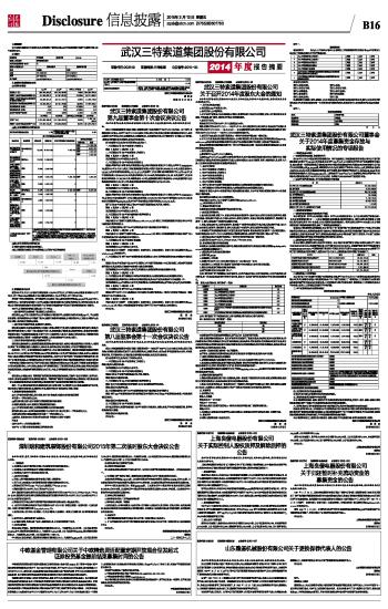武汉三特索道集团股份有限公司2014年度报告摘要 2015-03-13 来源:证券时报网 作者: