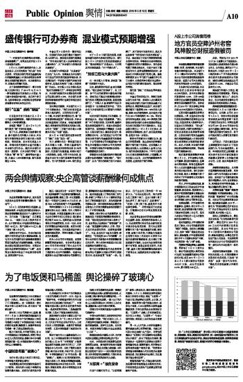 两会舆情观察:央企高管谈薪酬缘何成焦点 2015-03-13 来源:证券时报网 作者:唐威