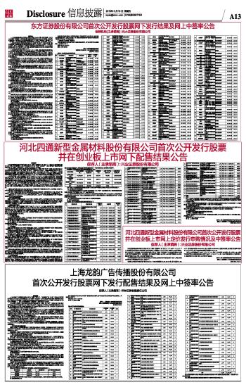 上海龙韵广告传播股份有限公司首次公开发行股票网下发行配售结果及网上中签率公告
