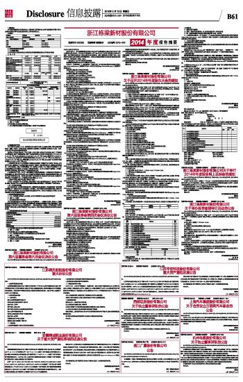 浙江栋梁新材股份有限公司2014年度报告摘要