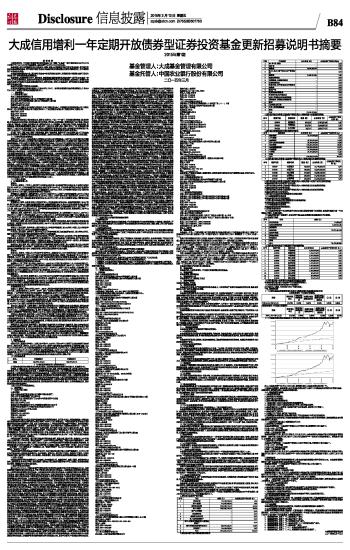 大成信用增利一年定期开放债券型证券投资基金更新招募说明书摘要