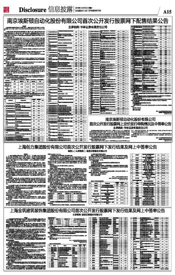 上海全筑建筑装饰集团股份有限公司首次公开发行股票网下发行结果及网上中签率公告 2015-03-16 来源:证券时报网 作者: