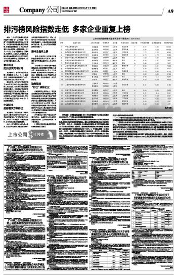 上市公司排污榜 排污榜风险指数走低 多家企业重复上榜 2015-03-17 来源:证券时报网 作者: