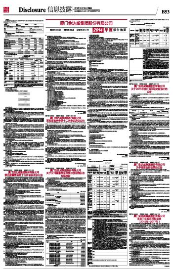 厦门金达威集团股份有限公司2014年度报告摘要 2015-03-19 来源:证券时报网 作者: