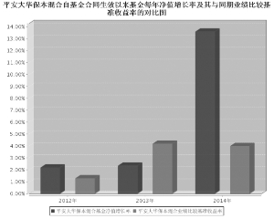 基金管理人:平安大华基金管理有限公司 基金托管人:中国建设银行股份有限公司 送出日期:2015年3月26日 §1 重要提示 1.1 重要提示 基金管理人的董事会、董事保证本报告所载资料不存在虚假记载、误导性陈述或重大遗漏,并对其内容的真实性、准确性和完整性承担个别及连带的法律责任。本年度报告已经全部独立董事签字同意,并由董事长签发。 基金托管人中国建设银行股份有限公司根据本基金合同规定,于2015年3月18日复核了本报告中的财务指标、净值表现、利润分配情况、财务会计报告、投资组合报告等内容,保证复核内容不存在虚假记载、误导性陈述或者重大遗漏。 基金管理人承诺以诚实信用、勤勉尽责的原则管理和运用基金资产,但不保证基金一定盈利。 基金的过往业绩并不代表其未来表现。投资有风险,投资者在作出投资决策前应仔细阅读本基金的招募说明书及其更新。 本报告期自2014年1月1日起至12月31日止。 §2 基金简介 2.1 基金基本情况 ■ 2.2 基金产品说明 ■ 2.3 基金管理人和基金托管人 ■ 2.4信息披露方式 ■ §3 主要财务指标、基金净值表现及利润分配情况 3.1 主要会计数据和财务指标 金额单位:人民币元 ■ 注:1.本期已实现收益指基金本期利息收入、投资收益、其他收入(不含公允价值变动收益)扣除相关费用后的余额,本期利润为本期已实现收益加上本期公允价值变动收益; 2.期末可供分配利润采用期末资产负债表中未分配利润与未分配利润中已实现部分的孰低数(为期末余额,而非当期发生数); 3.上述基金业绩指标不包括持有人认购或交易基金的各项费用,计入费用后实际收益水平要低于所列数字。 3.2 基金净值表现 3.2.1 基金份额净值增长率及其与同期业绩比较基准收益率的比较 ■ 业绩比较基准:每个保本期起始日的三年期银行定期存款税后收益率。 3.2.2 自基金合同生效以来基金份额累计净值增长率变动及其与同期业绩比较基准收益率变动的比较 ■ 1、本基金基金合同于2012年9月11日正式生效,截至报告期末已满两年; 2、按照本基金的基金合同规定,基金管理人应当自基金合同生效之日起六个月内使基金的投资组合比例符合基金合同的约定,截至报告期末本基金已完成建仓。建仓期结束时各项资产配置比例符合基金合同约定。 3.2.3 自基金合同生效以来基金每年净值增长率及其与同期业绩比较基准收益率的比较 ■ 1.本基金合同于2012年9月11日正式生效,截至报告期末已满两年。 2.2012年是合同生效当年, 按实际续存期计算, 不按整个自然年度进行折算。 3.3 过去三年基金的利润分配情况 本基金基金合同于2012年9月11日生效,合同生效日至本报告期末,本报告期内未进行利润分配。 §4 管理人报告 4.1 基金管理人及基金经理情况 4.1.1 基金管理人及其管理基金的经验 平安大华基金管理有限公司(以下简称"平安基金")经中国证监会证监许可【2010】1917号文批准设立。平安基金总部位于深圳,注册资本金为3亿元人民币,是目前中国内地基金业注册资本金最高的基金公司之一。目前公司股东为平安信托有限责任公司,持有股权60.7%;新加坡大华资产管理有限公司,持有股权25%;三亚盈湾旅业有限公司,持有股权14.3%。 平安基金秉承“规范、诚信、专业、创新”企业管理理念,致力于通过持续稳定的投资业绩,不断丰富的客户服务手段及服务内容,为投资人提供多样化的基金产品和高品质的理财服务,从而实现“以专业承载信赖”的品牌承诺,成为深得投资人信赖的基金管理公司。截至2014年12月31日,平安基金共管理七只开放式基金,资产管理总规模超125亿元。 4.1.2 基金经理(或基金经理小组)及基金经理助理简介 ■ 1、此处的“任职日期”为基金合同生效之日,“离任日期”为公告确定的解聘日期。 2、证券从业的含义遵从行业协会《证券业从业人员资格管理办法》的相关规定。 4.2 管理人对报告期内本基金运作遵规守信情况的说明 本报告期内,本基金管理人严格遵守《中华人民共和国证券投资基金法》、《公开募集证券投资基金运作管理办法》、《证券投资基金销售管理办法》和《证券投资基金信息披露管理办法》等有关法律法规及各项实施准则、《平安大华保本混合型证券投资基金基金合同》和其他有关法律法规的规定,本着诚实信用、勤勉尽责的原则管理和运用基金资产,在严格控制风险的基础上,为基金份额持有人谋求最大利益。本报告期内,基金运作整体合法合规,没有损害基金份额持有人利益。基金的投资范围、投资比例及投资组合符合有关法律法规及基金合同的规定。 4.3 管理人对报告期内公平交易情况的专项说明 4.3.1 公平交易制度和控制方法 本报告期内,根据《证券投资基金管理公司公平交易制度指导意见》,本基金管理人制定并下发了《平安大华基金管理有限责任公司公平交易管理制度》、《平安大华基金管理有限责任公司异常交易监控及报告制度》,严格执行法律法规及制度要求,从以下五个方面对交易行为进行严格控制:一是搭建平等的投资信息平台,合理设置各类资产管理业务之间以及各类资产管理业务内部的组织结构,在保证各投资组合投资决策相对独立性的同时,确保其在获得投资信息、投资建议和实施投资决策等方面享有公平的机会。二是制定公平交易规则,建立科学的投资决策体系,加强交易