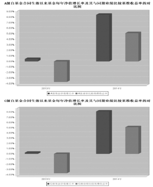 基金管理人:南方基金管理有限公司 基金托管人:中国银行股份有限公司 送出日期:2015年3月26日 §1 重要提示 1.1 重要提示 基金管理人的董事会、董事保证本报告所载资料不存在虚假记载、误导性陈述或重大遗漏,并对其内容的真实性、准确性和完整性承担个别及连带的法律责任。本年度报告已经三分之二以上独立董事签字同意,并由董事长签发。 基金托管人中国银行股份有限公司根据本基金合同规定,于2015年3月24日复核了本报告中的财务指标、净值表现、利润分配情况、财务会计报告、投资组合报告等内容,保证复核内容不存在虚假记载、误导性陈述或者重大遗漏。 基金管理人承诺以诚实信用、勤勉尽责的原则管理和运用基金资产,但不保证基金一定盈利。 基金的过往业绩并不代表其未来表现。投资有风险,投资者在作出投资决策前应仔细阅读本基金的招募说明书及其更新。 本报告期自2014年01月01日起至12月31日止。 本年度报告摘要摘自年度报告正文,投资者欲了解详细内容,应阅读年度报告正文。 §2 基金简介 2.1 基金基本情况 ■ 2.2 基金产品说明 ■ 2.3 基金管理人和基金托管人 ■ 2.4信息披露方式 ■ §3 主要财务指标、基金净值表现及利润分配情况 3.1 主要会计数据和财务指标 金额单位:人民币元 ■ 注:1.本期已实现收益指基金本期利息收入、投资收益、其他收入(不含公允价值变动收益)扣除相关费用后的余额,本期利润为本期已实现收益加上本期公允价值变动收益。 2.期末可供分配利润,采用期末资产负债表中未分配利润与未分配利润中已实现部分的孰低数(为期末余额,不是当期发生数)。 3.所述基金业绩指标不包括持有人认购或交易基金的各项费用,计入费用后实际收益水平要低于所列数字 3.2 基金净值表现 3.2.1 基金份额净值增长率及其与同期业绩比较基准收益率的比较 南方中债中期票据指数债券发起式A ■ 南方中债中期票据指数债券发起式C ■ 3.2.2 自基金合同生效以来基金份额累计净值增长率变动及其与同期业绩比较基准收益率变动的比较 ■ 3.2.3 自基金合同生效以来基金每年净值增长率及其与同期业绩比较基准收益率的比较 ■ 注:基金合同生效当年按实际存续期计算,不按整个自然年度进行折算。 3.3 过去三年基金的利润分配情况 注:无。 §4 管理人报告 4.1 基金管理人及基金经理情况 4.1.1 基金管理人及其管理基金的经验 1998年3月6日,经中国证监会批准,南方基金管理有限公司作为国内首批规范的基金管理公司正式成立,成为我国“新基金时代”的起始标志。 南方基金总部设在深圳,注册资本3亿元人民币。股东结构为:华泰证券股份有限公司(45%);深圳市投资控股有限公司(30%);厦门国际信托有限公司(15%);兴业证券股份有限公司(10%)。目前,公司在北京、上海、合肥、成都、深圳等地设有分公司,在香港和深圳前海设有子公司——南方东英资产管理有限公司(香港子公司)和南方资本管理有限公司(深圳子公司)。其中,南方东英是境内基金公司获批成立的第一家境外分支机构。 截至报告期末,南方基金管理有限公司(不含子公司)管理资产规模近3,000亿元,旗下管理57只开放式基金,多个全国社保、企业年金和专户理财投资组合。 4.1.2 基金经理(或基金经理小组)及基金经理助理简介 ■ 注:1、对基金的首任基金经理,其“任职日期”为基金合同生效日,“离职日期”为根据公司决定确定的解聘日期,除首任基金经理外,“任职日期”和“离任日期”分别指根据公司决定确定的聘任日期和解聘日期。 2、证券从业的含义遵从行业协会《证券业从业人员资格管理办法》的相关规定。 4.2 管理人对报告期内本基金运作遵规守信情况的说明 本报告期内,本基金管理人严格遵守《中华人民共和国证券投资基金法》等有关法律法规、中国证监会和《南方中债中期票据指数债券型发起式证券投资基金基金合同》的规定,本着诚实信用、勤勉尽责的原则管理和运用基金资产,在严格控制风险的基础上,为基金持有人谋求最大利益。本报告期内,基金运作整体合法合规,没有损害基金持有人利益。基金的投资范围、投资比例符合有关法律法规及基金合同的规定。 4.3 管理人对报告期内公平交易情况的专项说明 4.3.1 公平交易制度和控制方法 本基金管理人根据《证券投资基金管理公司公平交易制度指导意见》和有关法律法规的规定,针对股票、债券的一级市场申购和二级市场交易等投资管理活动,以及授权、研究分析、投资决策、交易执行、业绩评估等投资管理活动相关的各个环节,建立了股票、债券、基金等证券池管理制度和细则,投资管理制度和细则,集中交易管理办法,公平交易操作指引,异常交易管理制度等公平交易相关的公司制度或流程指引。通过加强投资决策、交易执行的内部控制,完善对投资交易行为的日常监控和事后分析评估,以及履行相关的报告和信息披露义务,切实防范投资管理业务中的不公平交易和利益输送行为,保护投资者合法权益。 4.3.2 公平交易制度的执行情况 本报告期内,本基金管理人严格执行《证券投资基金管理公司公平交易制度指导意见》,完善相应制度及流程,通过系统和人工等各种方式在各业务环节严格控制交易公平执行,公平对待旗下管理的所有基金和投资组合。 公司每季度对旗下组合进行股票和债券的同向