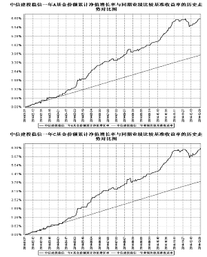 基金管理人:中信建投基金管理有限公司 基金托管人:上海浦东发展银行股份有限公司 送出日期:2015年3月27日 §1 重要提示 1.1 重要提示 基金管理人的董事会、董事保证本报告所载资料不存在虚假记载、误导性陈述或重大遗漏,并对其内容的真实性、准确性和完整性承担个别及连带的法律责任。本年度报告已经三分之二以上独立董事签字同意,并由董事长签发。 基金托管人上海浦东发展银行股份有限公司根据本基金合同规定,于2015年3月26日复核了本报告中的财务指标、净值表现、利润分配情况、财务会计报告、投资组合报告等内容,保证复核内容不存在虚假记载、误导性陈述或者重大遗漏。 基金管理人承诺以诚实信用、勤勉尽责的原则管理和运用基金资产,但不保证基金一定盈利。 基金的过往业绩并不代表其未来表现。投资有风险,投资者在作出投资决策前应仔细阅读本基金的招募说明书及其更新。 本报告中财务资料经审计,安永华明会计师事务所(特殊普通合伙)为本基金出具了无保留意见的审计报告,请投资者注意阅读。 本报告期自2014年1月27日(基金合同生效日)起至2014年12月31日止。 §2 基金简介 2.1 基金基本情况 ■ 2.2 基金产品说明 ■ 2.3 基金管理人和基金托管人 ■ 2.4信息披露方式 ■ §3 主要财务指标、基金净值表现及利润分配情况 3.1 主要会计数据和财务指标 金额单位:人民币元 ■ 注:1、本期已实现收益指基金本期利息收入、投资收益、其他收入(不含公允价值变动收益)扣除相关费用后的余额,本期利润为本期已实现收益加上本期公允价值变动收益。 2、期末可供分配利润的计算方法:如果期末未分配利润的未实现部分为正数,则期末可供分配利润的金额为期末未分配利润的已实现部分;如果期末未分配利润的未实现部分为负数,则期末可供分配利润的金额为期末未分配利润(已实现部分相抵未实现部分)。 3、所述基金业绩指标不包括持有人认购或交易基金的各项费用,计入费用后实际收益水平要低于所列数字。 4、本基金合同自2014年1月27日起生效,至2014年12月31日未满一年。 3.2 基金净值表现 3.2.1 基金份额净值增长率及其与同期业绩比较基准收益率的比较 中信建投稳信一年A ■ 中信建投稳信一年C ■ 3.2.2 自基金合同生效以来基金份额累计净值增长率变动及其与同期业绩比较基准收益率变动的比较 ■ 注:1、本基金基金合同于2014年1月27日生效,基金合同生效起至报告期末未满一年。 2、根据本基金基金合同的约定,本基金自基金合同生效之日起6个月内为建仓期,建仓期结束时本基金的投资组合比例符合基金合同的有关约定。 3.2.3 自基金合同生效以来基金每年净值增长率及其与同期业绩比较基准收益率的比较 ■ §4 管理人报告 4.1 基金管理人及基金经理情况 4.1.1 基金管理人及其管理基金的经验 中信建投基金管理有限公司于2013年8月获得中国证监会核准设立批复,并于2013年9月完成工商注册登记,正式成立,注册地北京,注册资本15000万元,具有基金管理资格,经营基金募集、基金销售、特定客户资产管理、资产管理和中国证监会许可的其他业务。 公司成立以来,公募基金和特定客户资产管理业务得到长足发展,公司已于2014年成功发行了中信建投稳信定期开放债券型证券投资基金、中信建投货币市场基金、中信建投稳利保本混合型证券投资基金三支公募产品,投资业绩稳步上升,以良好的投资回报实现了投资人资产的保值增值。公司已经与多家商业银行建立合作关系,与浦发银行、北京银行、上海银行、华夏银行等开展业务合作。公司特定客户资产管理业务平稳起航,顺利开展,与多家财务公司、商业银行、信托公司、证券公司、私募基金和上市公司开展了合作或建立合作意向,在定向增发、结构化债券投资等多个领域开展了业务。除传统业务以外,公司也十分重视创新业务的开发,公司已经与移动互联网公司、传媒公司、第三方支付公司、商业银行、证券公司合作,为客户提供余额理财等相关服务。 公司作为财富管理公司,秉承“忠于信,健于投”,追求以稳健的投资及收益,回馈于客户的信任。公司致力于经过长期努力跻身国内一流基金管理公司的行列,拥有资产管理行业一流的团队、最具影响力的品牌、最为稳定优秀的业绩,资产管理规模进入业内前列。 4.1.2 基金经理(或基金经理小组)及基金经理助理简介 ■ 注:1、任职日期是指本基金基金合同生效之日。 2、证券从业的含义遵从行业协会《证券业从业人员资格管理办法》的相关规定。 4.2 管理人对报告期内本基金运作遵规守信情况的说明 本报告期内,本基金管理人严格遵守《中华人民共和国证券投资基金法》、《公开募集证券投资基金运作管理办法》、《证券投资基金销售管理办法》、《证券投资基金管理公司公平交易制度指导意见》、基金合同和其他有关法律法规,本着诚实信用、勤勉尽责的原则管理基金资产,在严格控制风险的基础上,为基金持有人谋求最大利益。本报告期内,基金运作整体合法合规,没有损害基金持有人利益。 4.3 管理人对报告期内公平交易情况的专项说明 4.3.1 公平交易制度和控制方法 本基金管理人根据《证券投资基金管理公司公平交易制度指导意见》等法规制定了《中信建投基金管理有限公司公平交易管理办法》。公司通过科学、制衡