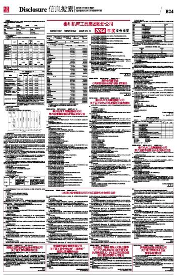 秦川机床工具集团股份公司2014年度报告摘要 2015-03-28 来源:证券时报网 作者: