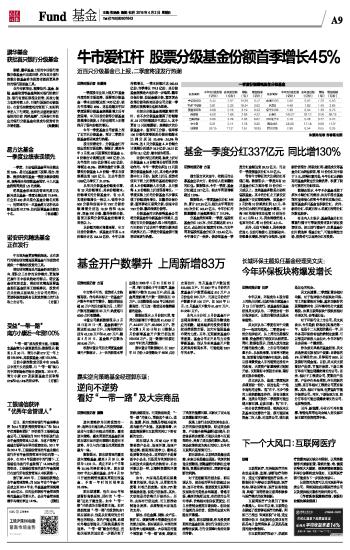 基金一季度分红337亿元 同比增130%