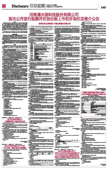 河南清水源科技股份有限公司首次公开发行股票并在创业板上市初步询价及推介公告 2015-04-03 来源:证券时报网 作者: