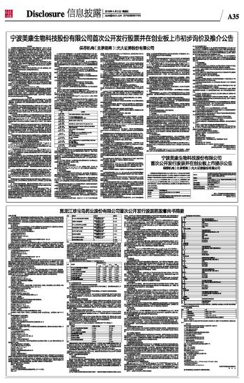 宁波美康生物科技股份有限公司首次公开发行股票并在创业板上市初步询价及推介公告 2015-04-03 来源:证券时报网 作者: