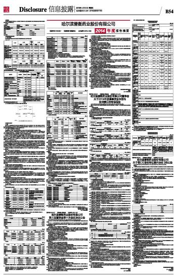哈尔滨誉衡药业股份有限公司2014年度报告摘要 2015-04-03 来源:证券时报网 作者:
