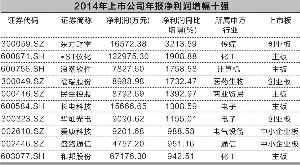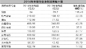 见习记者 岳薇 A股公司2014年年报披露进程已过大半。截至昨日,沪深两市已有2005家公司披露了经营业绩,去年营业收入和净利润同比分别增长6.24%和7.57%。 今年一季度,中小板和创业板的指数涨幅达50%,远超主板指数。2014年年报数据显示,两个板块净利润同比增幅也远超平均水平。 创业板3公司 净利增幅跻身前十 截至昨日,中小板公司和创业板公司大部分已披露了2014年年报,整体业绩同比增长明显。其中,中小板公司营业收入和净利润同比分别增长12.66%和16.69%;创业板公司营业收入和净利润同比则分别增长26.12%和17.09%。 据统计,1961家公司中,净利润增长超过10倍的有7家。在净利增长前十的榜单中,化工行业和电子行业各有两家公司,分别为*ST仪化、和邦股份以及长电科技、华灿光电。 创业板有3家公司跻身净利增幅前十。其中,东方财富以3213.59%净利涨幅领跑榜单。另两家创业板公司为福瑞股份和华灿光电,净利涨幅分别为1732.47%和1155.01%,分列榜单第四位和第七位。 受益于证券市场回暖,东方财富的信息技术、金融数据和金融电子商务板块营收大幅增长,前两项业务的毛利率同比增长11.84%和29.97%。有赖于资本市场的持续活跃,东方财富今年一季度净利润预增约400%-430%。公司目前正在筹划重大事项,处于停牌中。 而福瑞股份和华灿光电分属医药生物行业和电子行业。由于药品生产成本下降,子公司诊断仪器业务稳步增长,推动福瑞股份业绩大增。受照明市场应用驱动,华灿光电的LED芯片产能和销售收入增长显著。 光伏医药业绩抢眼 钢铁企业微利 从细分行业来看,电气设备行业业绩表现可圈可点。受益于政策引导和市场驱动等因素,光伏产业公司增长强劲,固定资产投资也同比大幅增长。16家净利润翻番的电气设备公司中,爱康科技、隆基股份、天龙光电、银星能源和京运通5家均主营光伏产品,除了天龙光电是靠出售资产扭亏为盈以外,其余公司光伏业务发展向好。其中,中小板公司爱康科技以净利润988.58%的增幅跻身十强榜单。 医药生物行业目前以净利润17.62%的增幅排名行业榜单第10位。有14家公司实现了业绩翻番。其中,福瑞股份净利润同比增长1732.47%,涨幅领跑医药生物公司。信邦制药、沃华医药、海翔药业和亿帆鑫富今年一季度续传喜报,净利润同比大幅增长。 值得一提的是,医药类公司近期在资本市场动作频频,这14家医药生物公司中,三精制药与哈药股份的重大资产重组已于近期完成,信邦制药和四环生物目前正在筹划重大事项停牌,广誉远的定增事项还在进行中。而近期转型涉足大医疗的朗玛信息,以及注入美年大健康,由纺织服装企业变身健康体检企业的江苏三友复牌后连续涨停,挑动资本市场神经。 另外,钢铁企业净利润总额仅为64亿元,同比增幅虽然领跑榜单,达115.49%。不过,不少公司净利率只有千分之几,属于微利。 本版导读: