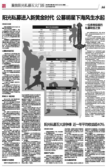 阳光私募五大派争锋 近一年平均收益超40% 2015-04-03 来源:证券时报网 作者:杨庆婉