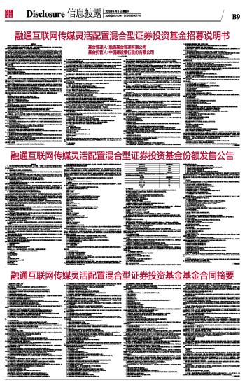 融通互联网传媒灵活配置混合型证券投资基金份额发售公告 2015-04-04 来源:证券时报网 作者: