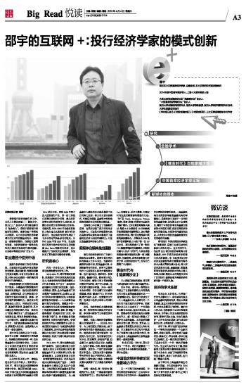 邵宇的互联网+:投行经济学家的模式创新 2015-04-04 来源:证券时报网 作者:谭恕