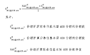当泰信基本面400份额的份额净值达到2.000元后,泰信基本面400A份额、泰信基本面400B份额、泰信基本面400份额三类份额将按照如下公式进行份额折算: