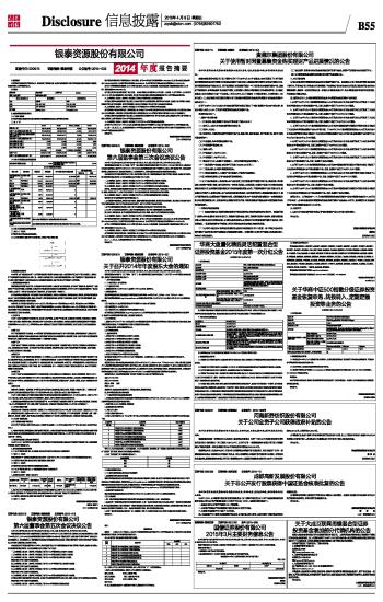 银泰资源股份有限公司2014年度报告摘要 2015-04-09 来源:证券时报网 作者: