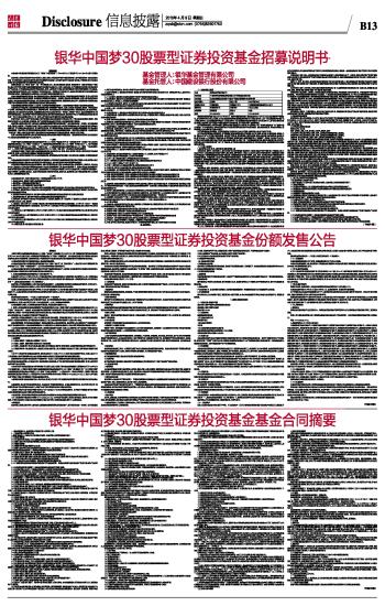 银华中国梦30股票型证券投资基金份额发售公告 2015-04-09 来源:证券时报网 作者: