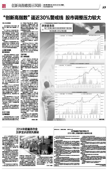 “创新高指数”逼近30%警戒线 股市调整压力较大
