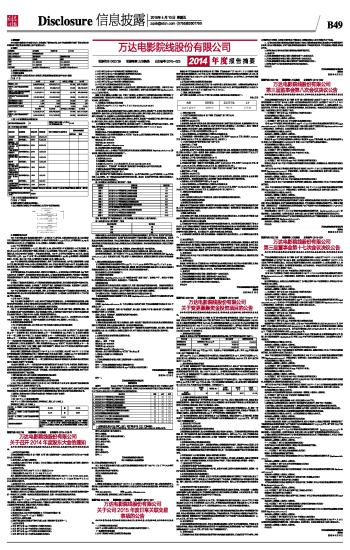万达电影院线股份有限公司2014年度报告摘要