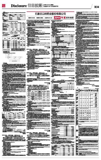 石家庄以岭药业股份有限公司2014年度报告摘要 2015-04-11 来源:证券时报网 作者: