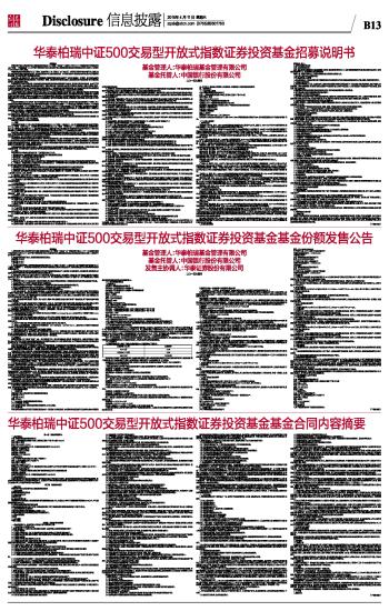 华泰柏瑞中证500交易型开放式指数证券投资基金基金合同内容摘要 2015-04-11 来源:证券时报网 作者: