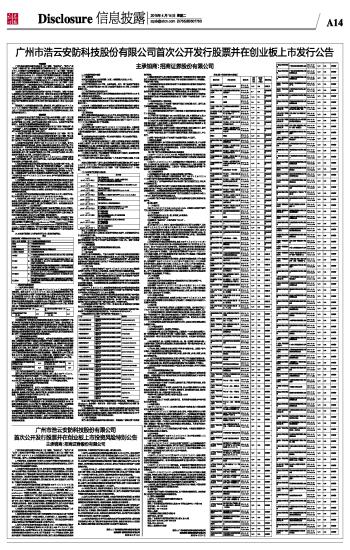 广州市浩云安防科技股份有限公司首次公开发行股票并在创业板上市发行公告