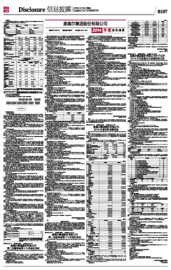 麦趣尔集团股份有限公司2014年度报告摘要 2015-04-16 来源:证券时报网 作者: