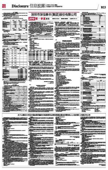 深圳市深信泰丰(集团)股份有限公司2015第一季度报告