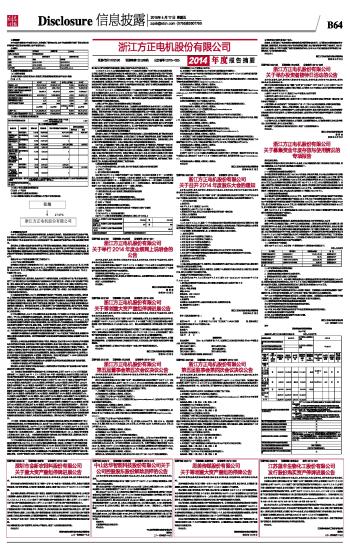 浙江方正电机股份有限公司2014年度报告摘要 2015-04-17 来源:证券时报网 作者: