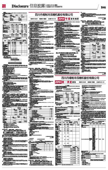 四川丹甫制冷压缩机股份有限公司2014年度报告摘要 2015-04-17 来源:证券时报网 作者: