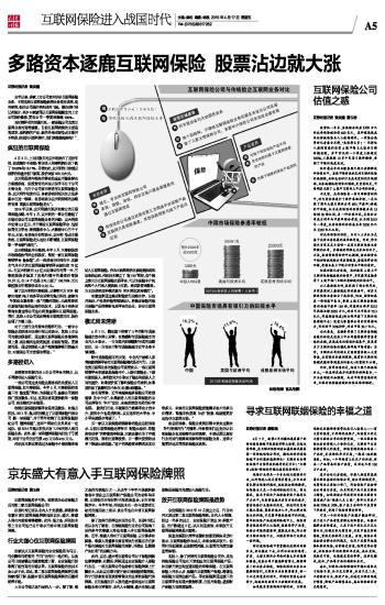 证券时报记者 潘玉蓉 互联网保险炙手可热,谁将成为众安保险之后的第二家互联网保险公司? 证券时报记者从业内人士处获悉,多路资本有意申请互联网保险牌照包括京东、盛大、泰康人寿在内纷纷摩拳擦掌。此外,银之杰、邦讯技术等上市公司也已公开表示开始申请互联网保险牌照。 行业大咖心仪互联网保险牌照 首家试点互联网保险的众安保险因为马云、马化腾和马明哲的“三马”合作而一炮打响。从该公司日前被曝出的融资额度上看,众安保险已经取得了相当高的市场认同。互联网保险的尝试不会止步于此,那么,第二张互联网保险牌照将花落谁家?据了解,酝酿申请互联网保险牌照的后继者络绎不绝。 上市公司银之杰行动快人一步。据了解,银之杰作为发起方之一,从去年下半年开始就积极准备申请设立互联网财产保险公司的材料和手续,目前相关申报材料已报送保监会,正在审核程序中。今年年初,邦讯技术在一次与投资者互动的交流活动上表示,该公司也在申请互联网保险牌照。 除了这些已经浮出水面的公司,证券时报记者从业内了解到,在传统保险行业的公司架构下运作多年的泰康人寿也有意入手互联网保险牌照。近年,泰康人寿对于互联网保险、云计算多有探索。泰康人寿董事长兼首席执行官陈东升在多个场合谈起对互联网保险的理解,并提出“让数据产生红利”的战略方向。 此外,京东、盛大等互联网公司对于保险牌照也摩拳擦掌。在腾讯、阿里通过众安保险介入保险行业后,一些互联网公司也纷纷在保险牌照上开疆拓土。比如京东很早便开始申请保险销售牌照,苏宁已经拿到首张发给零售业的全国性保险代理牌照。正在酝酿回归A股的盛大游戏也对互联网保险业务非常看好,业内人士猜测,盛大有望从虚拟物品保险的角度切入保险行业。 放开互联网保险牌照是趋势 众安保险在2013年10月成立之后,行业内再无发过第二张互联网保险牌照。业内人士预测,经过一年多的试点,众安保险开发出50多款产品,用户数超过2亿,试点初见成效,未来放开互联网保险牌照是大趋势。 保监会原副主席李克穆此前接受媒体采访时表示,互联网保险作为试点,未来会逐步放开。但同时他也强调,应该防范风险,从监管的角度完善监管体制。 实际上,除了持牌的互联网保险公司外,其他传统保险公司也在开发相应的互联网保险产品。如首家开发出淘宝退运险的华泰保险,在互联网保险上并未止步,相继在互联网财产保险、跨境电商保险方面推出新产品。平安保险则通过旗下的互联网平台实现大数据积累,在信用保险、虚拟财产保险方面深度触网。 本版导读: